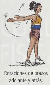 rotaciones con los dos brazos alantes, los dos atrás, alternando arriba y abajo, abriendo y cerrando simultáneamente.